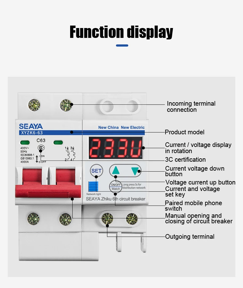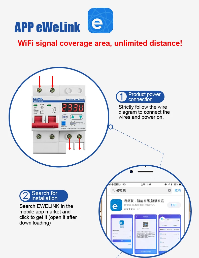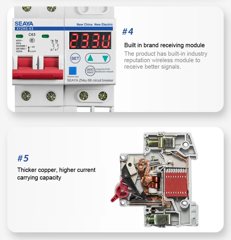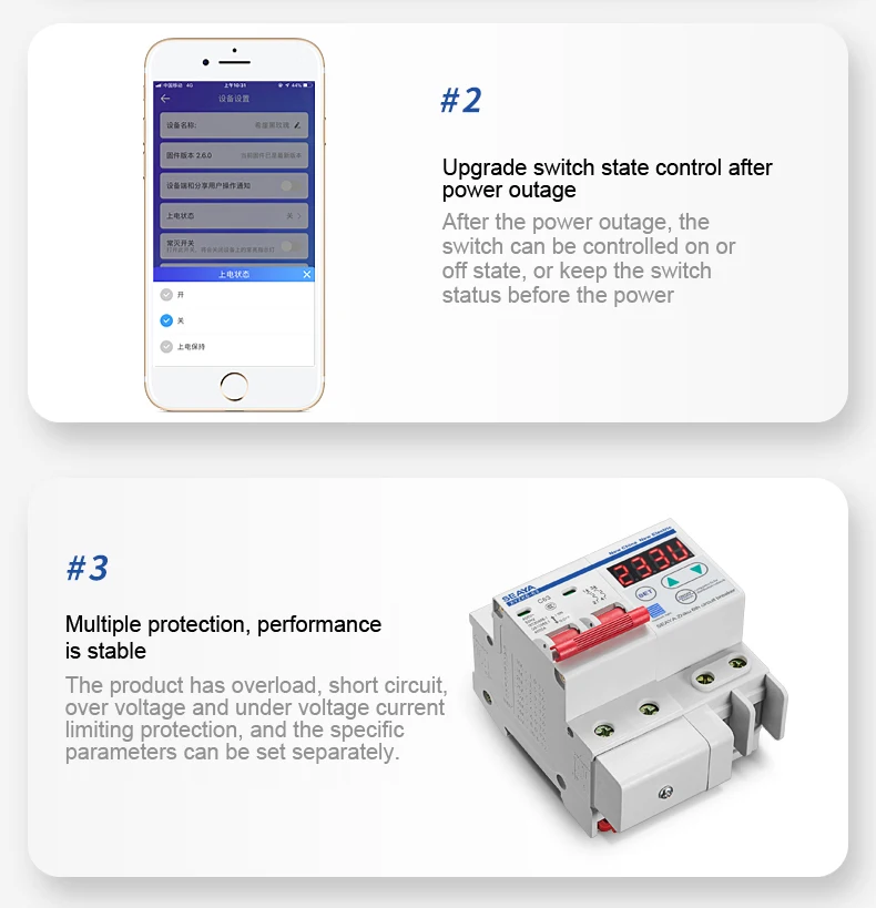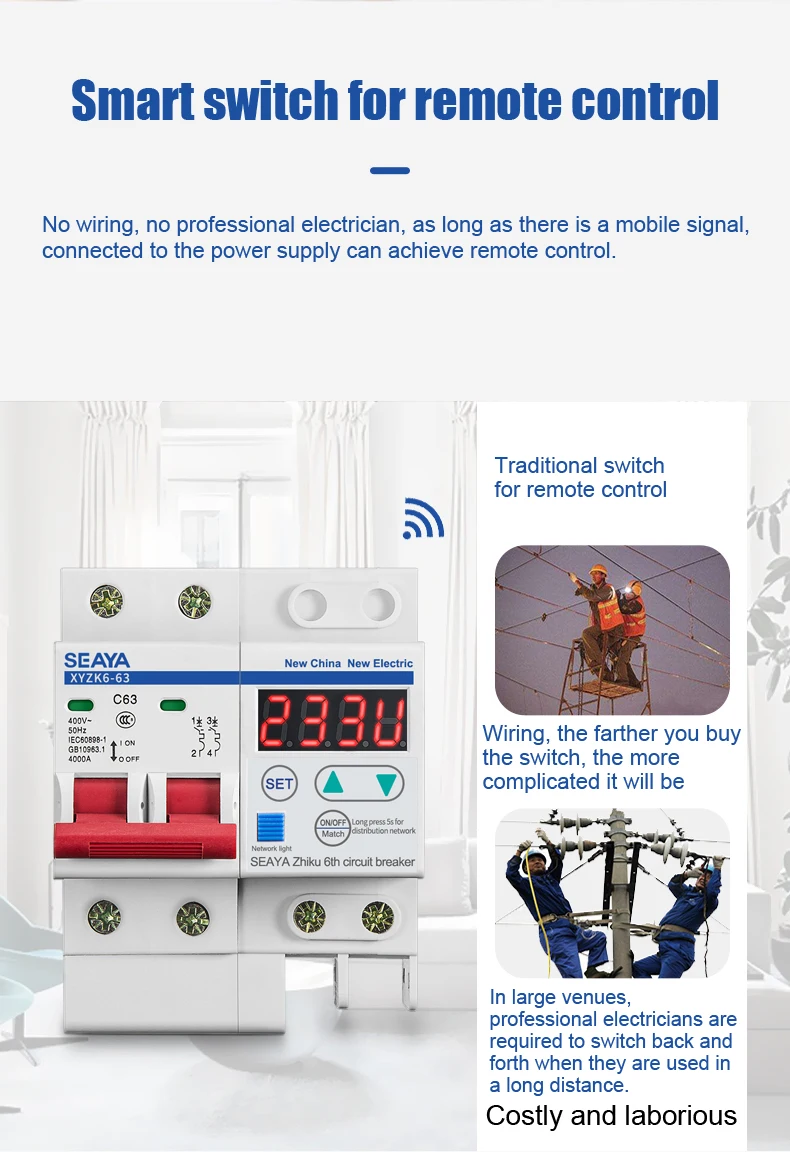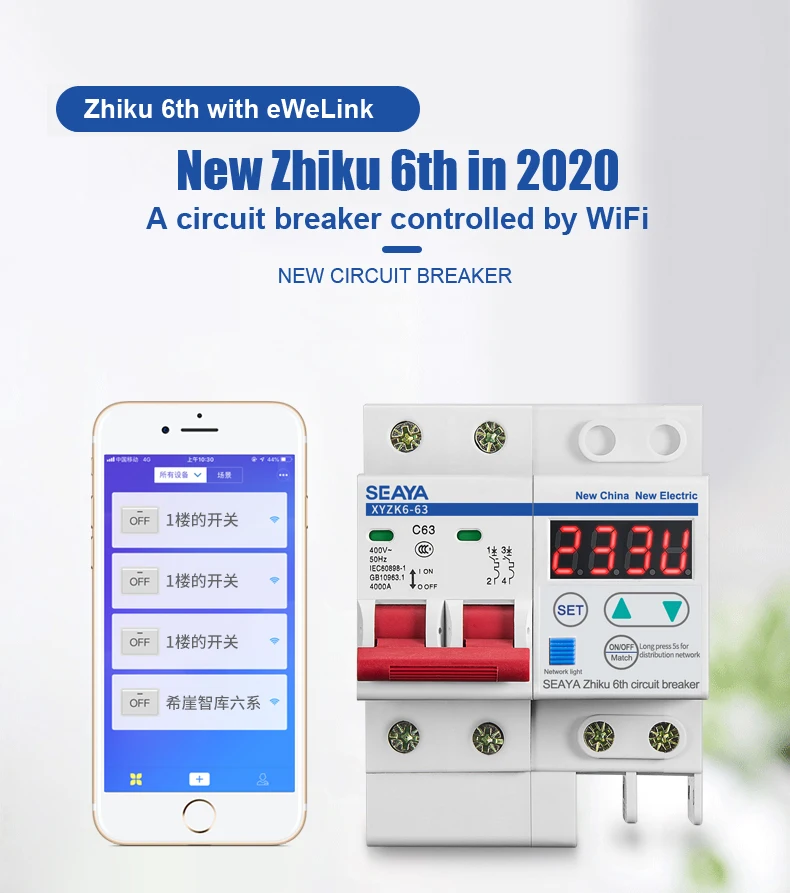 Disjuntor (corrente ajustável de 1A até 63A) inteligente de contagem regressiva automático com função memória e Wifi integrado.