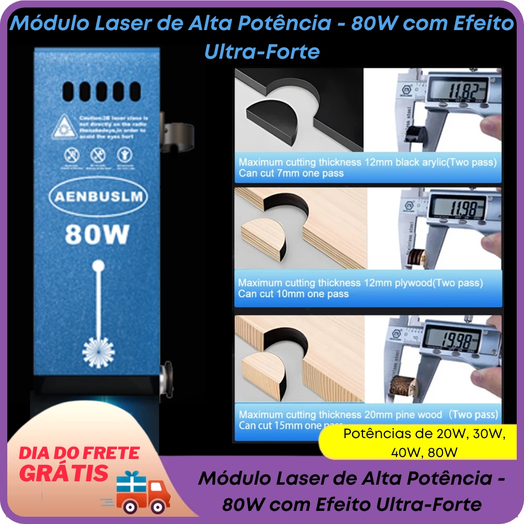 ✨ Se você busca precisão e potência para seus projetos de gravação e corte a laser, a Cabeça Laser CNC é ideal para você! Com opções de potência de 20W, 30W, 40W e até 80W, ela facilita o corte de materiais como madeira compensada, acrílico e até aço inoxidável em alta velocidade! Não perca a chance de impulsionar sua criatividade com esse equipamento robusto e fácil de usar. 😍
