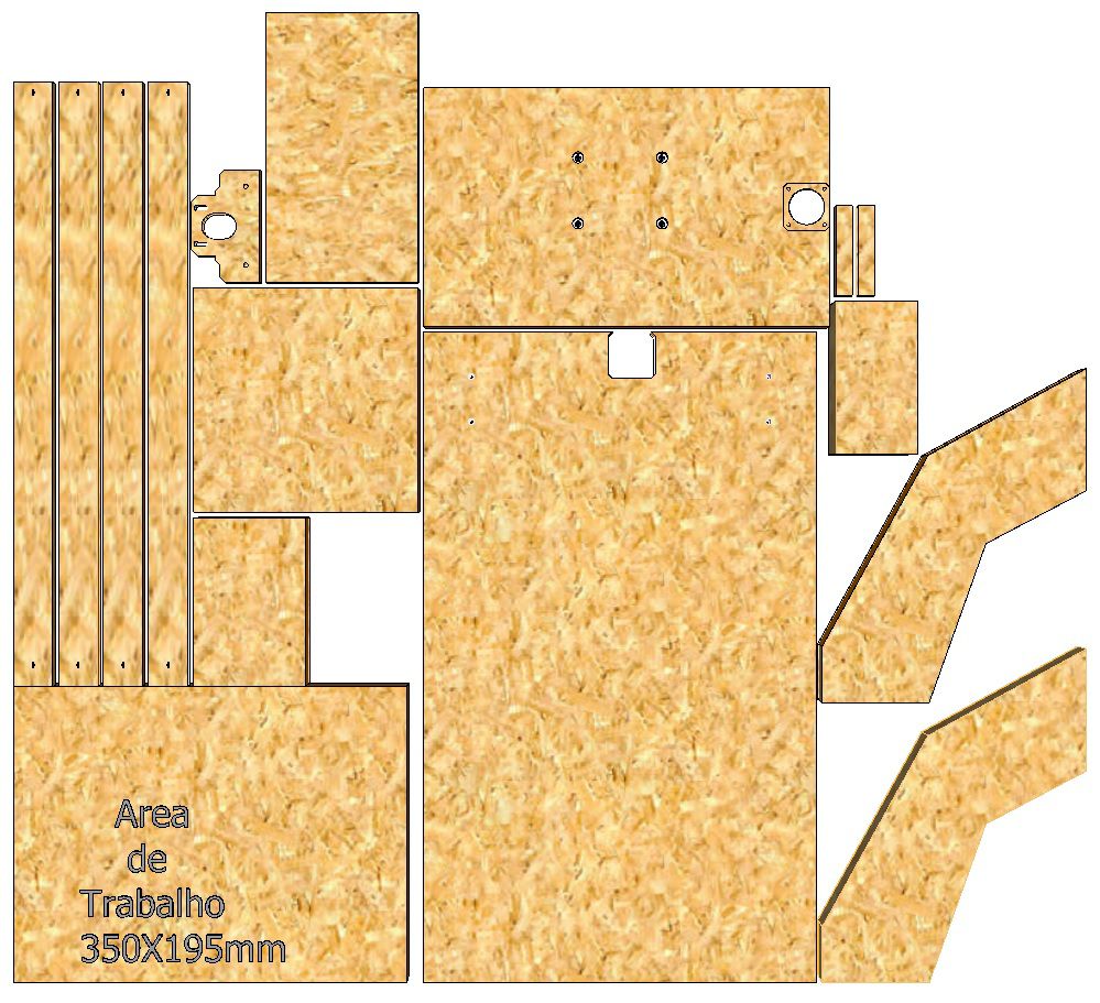 - 17 peças em MDF para montar a sua CNC 1.0 incluindo as peças para montar os fins de curso;